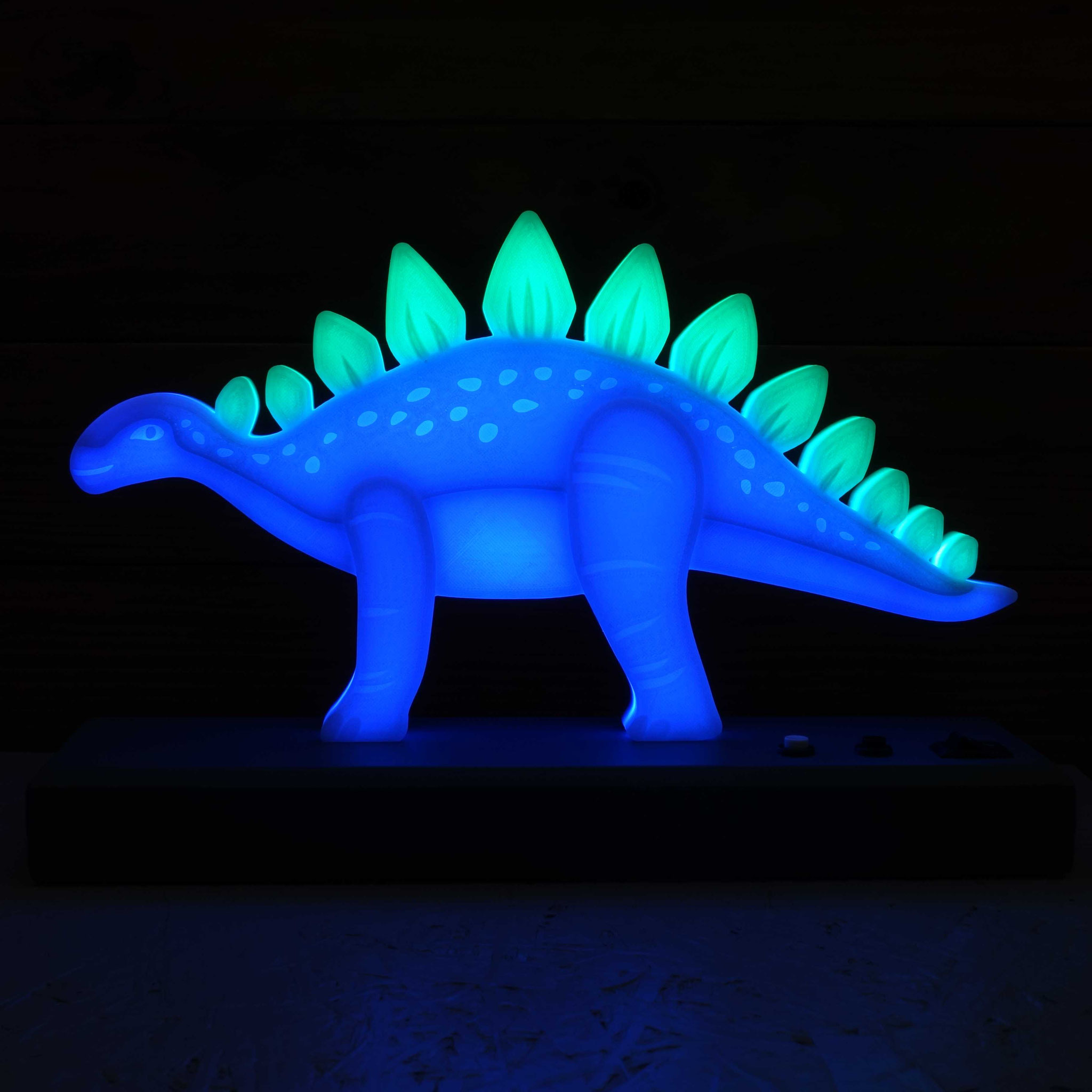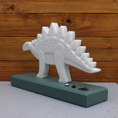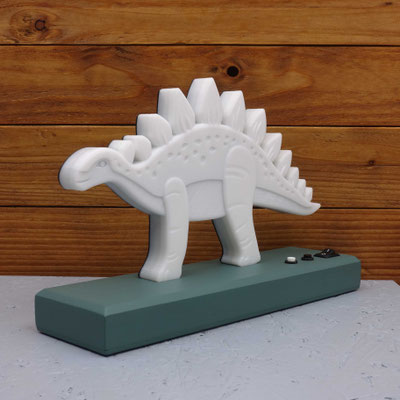Die Tischlampe in der Form eines Stegosaurus bewirkt durch ihr Zusammenspiel von Farbe, Licht und Form leuchtende Augen bei Groß und Klein. Sie ist auch als Nachtlicht geeignet. Die Helligkeit ist verstellbar.